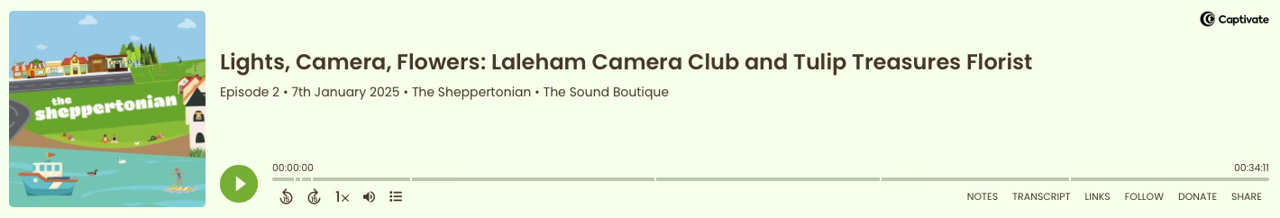 The Sheppertonian podcast and email newsletter is produced by The Sound Boutique, an award-winning audio production company right here in Shepperton. If you’d like help with anything from bespoke music, problem audio, or if you’d like your organisation to produce a podcast, you can contact The Sound Boutique at the email hello@thesoundboutique.com to start a conversation.