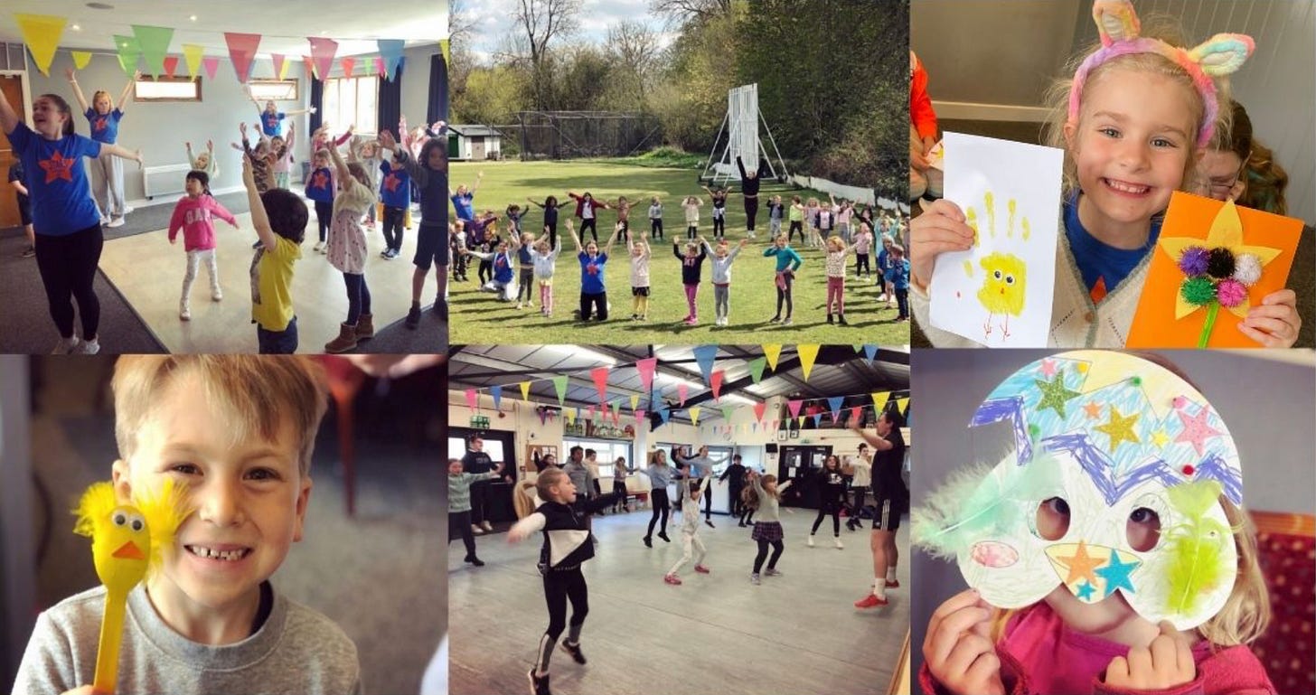 Shepperton Cricket Club, Russell Road, TW17 9HB. Group 1 aged 4-8 | Group 2 aged 9+. A daily dose of dance, acting, singing, arts & crafts, friendships and fun! 1 day £35 / 2 days £65 / 3 days £95 / 4 days £ 130. Book now at www.sheppertonstars.co.uk/easterclub.