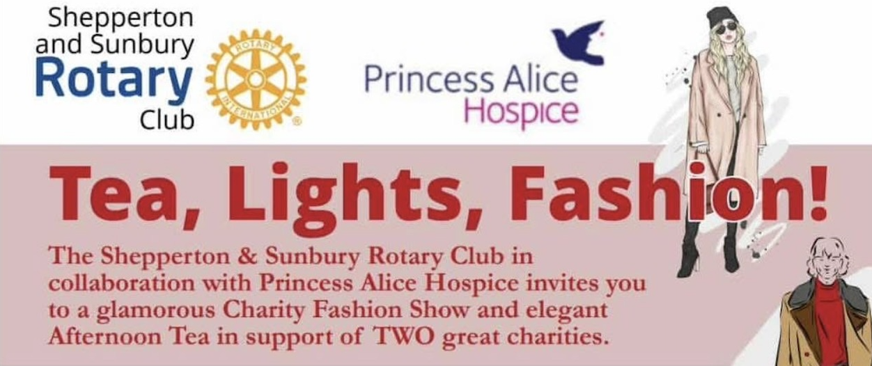 Holiday Inn, Felix Lane, Shepperton TW17 8NP. The Shepperton & Sunbury Rotary Club in collaboration with Princess Alice Hospice invites you to a glamorous Charity Fashion Show and elegant Afternoon Tea in support of TWO great charities. Traditional Afternoon Tea served at your table with sandwiches, scones and cakes. All modelled outfits available for purchase. Buy tickets here.